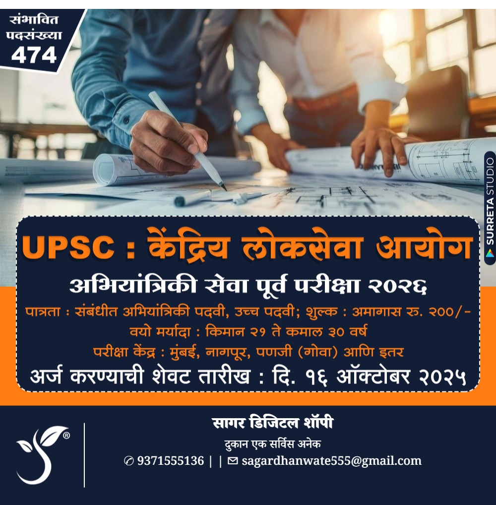 ☑ *केंद्रीय लोकसेवा आयोग मध्ये अभियांत्रिकी सेवा पूर्व परीक्षा २०२६ जाहीर*